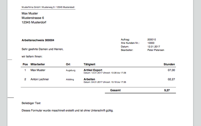 arbeitsnachweis